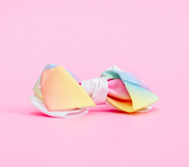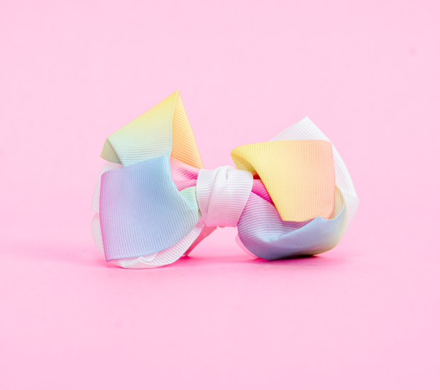 A pastel rainbow hair clip, making it a standout accessory for any mermaid makeover.