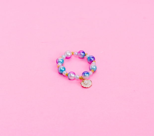 A graceful bracelet with pearl-style beads and a seashell charm featuring a