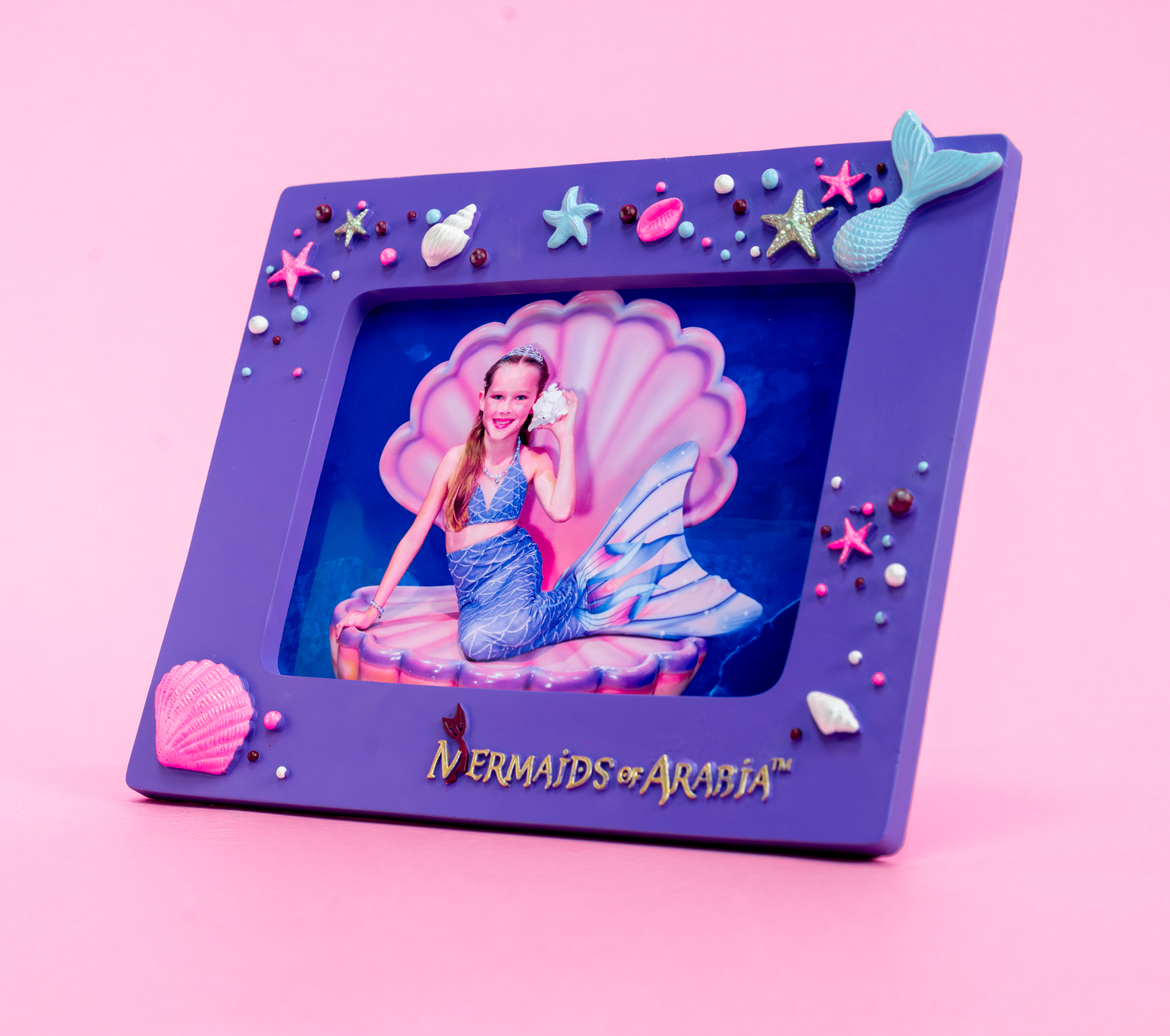 mermaid tail accent. Designed to showcase a treasured mermaid photo in a playful,